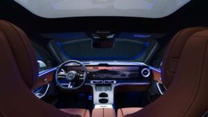 Gli interni segnano uno stacco ancora più forte tra termica ed elettrica. Merito dell’ultima versione dello scenografico Mbux Hyperscreen che combina tre display separati sotto un’ampia superficie di vetro: un quadro strumenti da 10,3 pollici, un display centrale da 14 e un display passeggero sempre da 14.