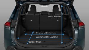 Le dimensioni sono da suv medio-grande, con una lunghezza di 460 cm, una larghezza di 186 cm e un’altezza di 169 cm. Le carreggiate ampie e i passaruota marcati sottolineano la sua presenza su strada. Mentre la griglia anteriore e i dettagli del frontale mantengono un’impostazione robusta, senza eccessi.