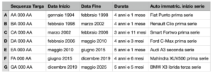 •  AA 000 AA – gennaio 1994 (inizio del sistema nazionale) – Fiat Punto benzina prima serie.
