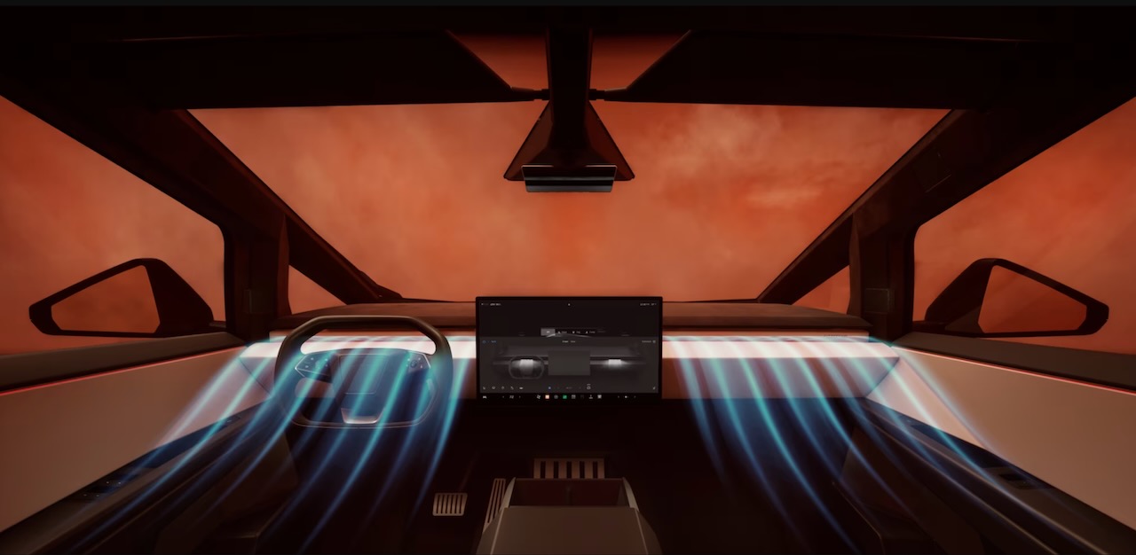 Il Cybertruck è per prima cosa un mezzo da lavoro. Questo vuol dire che deve trasportare carichi pesanti e avere un’ottima capacità di traino. Il cassone è lungo 183 cm, largo 122 cm e ha un volume di carico utile di 1987 litri. Può caricare fino a 1134 kg e trainare carichi sino a 4490 kg! A favorire il carico eccezionale e il transito su percorsi offroad provvedono le sospensioni a controllo elettronico che alzano la macchina fino a 43,2 cm dal suolo. A tal proposito, Musk ha mostrato un altro breve filmato in cui il pick-up Tesla, un Rivian R1T, un Ford F-150 Lightning e un Ford F-350 si sfidano trainando un mezzo pesante. Vince chi riesce a compiere una distanza maggiore. Manco a dirlo, è il Cybertruck a ottenere la vittoria.
