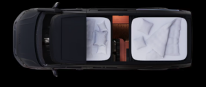 Dispone di un “habitat” a 2 livelli (ecco il perché del blocco sopra il tetto rispetto al furgone di serie) che offre zone giorno e notte separate. Quello superiore contiene due grandi letti, entrambi adatti a un paio di adulti ciascuno, mentre il piano terra ospita la cucina, il bagno e la sala da pranzo/lavoro/area relax. Ogni livello ha il suo sistema audio. Il letto anteriore ha dimensioni di 200 x 138 cm, mentre quello posteriore è appena più corto, 195 x 138 cm.