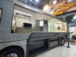 Il modello è sviluppato sul telaio impiegato da Volvo Truck per i Bus: “È nato per il trasporto delle persone”, spiegano allo stand. Su richiesta, la Volkner Mobil lavora anche sull’architettura Mercedes. All’azienda tedesca “piace” il fatto che il motore dell’assetto Volvo sia al posteriore: nel modello in vetrina arriva a 560 Cv.