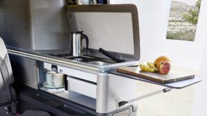 Il design interno del nuovo California è stato completamente ripensato per offrire maggiore spaziosità e versatilità. La gestione delle funzionalità del camper è stata semplificata e resa più accessibile grazie a un display intuitivo collocato nella zona giorno, integrato dalla possibilità di controllo tramite l’app di infotainment o direttamente da smartphone tramite l’app dedicata California.