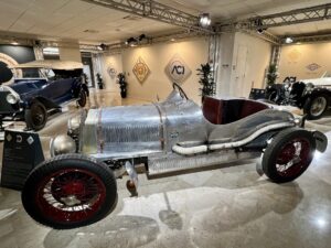 C’è poi una OM 469 Sport del 1922, auto sportiva vincitrice della Coppa delle Alpi e dei circuiti del Garda e del Mugello, con motore di 1500 cc di cilindrata in una silhouette in lamiera. L’esemplare esposto, in particolare, fu studiato ad hoc per il primo proprietario, il noto meccanico Luigi Del Re, proprio per adattarla alle competizioni, ed ha partecipato alla Mille Miglia del 2021.