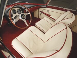 Quello che vedete è proprio il prototipo su cui furono effettuati gli studi aerodinamici: il telaio serie 10120, numero 00001, che appartiene alla Collezione Lopresto dal maggio 2010. Corrado Lopresto, che ci tiene spesso compagnia sulle pagine de l’automobileclassica, ha eseguito un restauro completo per riportarla nelle condizioni d’origine in cui venne presentata in anteprima assoluta al Salone di Torino del 1957, risultando una delle novità più apprezzate e “obbligando” la Casa a una produzione di serie, seppur piccola.