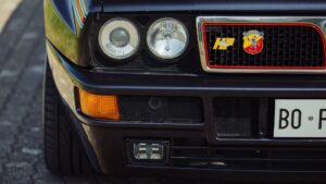 L’abitacolo mantiene lo schema originale targato Martini: sedili Recaro con rivestimenti in Alcantara, cuciture rosse e loghi HF, cinture di sicurezza rosse. Esteticamente, la differenza principale (oltre al colore nero) riguarda i cerchi in lega: mentre nei modelli “standard” Martini 5 erano bianchi, su questa vettura sono argento.