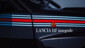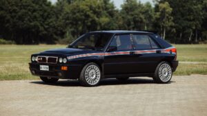 La base è la Lancia Delta HF Integrale Evo “Martini 5”. Una serie limitata nata per celebrare il quinto titolo mondiale costruttori WRC consecutivo conquistato da Lancia nel 1991. In totale furono prodotti 400 esemplari, tutti bianchi con livrea Martini Racing e numerazione progressiva.