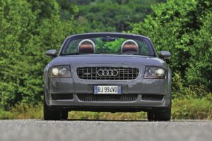 Di traverso non aveva solo il motore, la TT: all’inizio della sua carriera ci si metteva anche lei. Era l’epoca in cui volavano parecchie vetture: ti ricordi le avventure dell’alce e della Mercedes Classe A? Nel nostro caso, all’immediata vigilia del nuovo millennio l’Audi richiamò parecchi esemplari per un problema di stabilità poi corretto montando esp, spoiler posteriore che riduceva la portanza e barre anti rollio con spessori differenziati in modo da correggere la tendenza ad andarsene di coda limandola (anche) con una superiore attitudine a smusare.