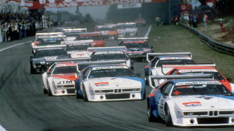 Negli anni ’70 BMW decise di sviluppare una vettura a motore centrale in grado di competere con le supercar più in voga del momento, come la Porsche 911. Un concetto totalmente nuovo per il marchio bavarese che causò non pochi problemi sia in fase di progettazione che di vendita. L’auto, denominata M1, fu svelata al pubblico nel 1978 e nascondeva sotto il cofano il propulsore M88/1, sei cilindri in linea da 3453cc di cilindrata e 277cv di potenza. La lunga lista d’attesa e il prezzo elevato si tradussero in soli 453 esemplari nei tre anni di produzione, ma la M1 fu in grado di guadagnarsi un posto speciale nel cuore degli appassionati grazie a una brillante trovata di marketing del capo di BMW Motorsport Jochen Neerpasch.