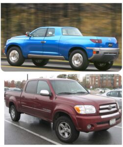 Il pubblico aveva criticato Toyota per le dimensioni eccessivamente contenute del pick-up Tundra. L’azienda ha così risposto con il concept FTX presentato al Salone dell’auto di Detroit del 2004. La società nipponica lo descrisse come “una dichiarazione che promette una potenza bruta all’altezza del suo stile audace”. Un’allusione nemmeno troppo velata al fatto che aveva chiaramente ricevuto le critiche sulle dimensioni del pick-up Tundra. Le dimensioni XXL e i passaruota svasati sottolineano il design muscoloso. Dall’avveniristico Toyota FTX si è passati al Toyota Tundra di seconda generazione, presentato al Salone dell’auto di Chicago del 2006. Il pick-up era più grande del suo predecessore e aveva un design più robusto. Peccato però che il design era tutt’altro che futuristico e il powertrain ibrido utilizzato dell’FTX non è stato reso disponibile.