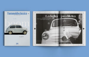 Ma stiamo uscendo dal seminato. Ci appuntiamo tutte queste pilloline per futuri approfondimenti. Scusate la divagazione, ma i ricordi fanno questi effetti. Tornando alla nostra Fiat 600, l’abbiamo celebrata su l’automobileclassica di marzo, attualmente in edicola, con un trittico di servizi dedicati proprio ai 70 anni della creatura di Dante Giacosa: un viaggio da Milano a Torino con una prima serie del 1955, l’incontro all’Heritage Hub con il prototipo tipo 100 e una variegata collezione di fuoriserie su base 600: coupé, berline, spider e “spiaggine” firmate da Viotti, Ghia, Vignale, Scioneri, Mantelli e Moretti. Da non perdere.