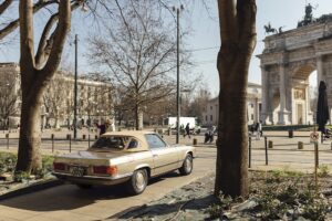 Rassicurante e clamorosa allo stesso tempo è la Mercedes-Benz 350 SL, una primissima serie del 1971, che ci porta nel pianeta delle roadster tedesche. La R107 in esame è spinta dal V8 da 3499 cm³ abbinato a un cambio a tre marce automatico, un lussuoso optional per il tempo, come del resto l’aria condizionata.