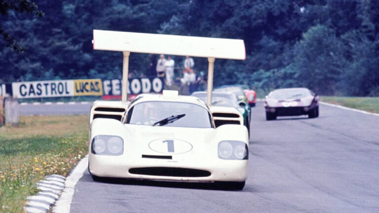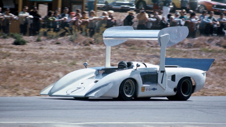 Nel corso della storia dell’automobilismo sono pochi gli ingegneri che possono essere ricordati per avere introdotto soluzioni tecniche che hanno rivoluzionato il mondo del motorsport. Il nome di Jim Hall fa parte di questo ristrettissimo gruppo: figlio di una famiglia di petrolieri americani, prima pilota e poi costruttore, ebbe l’opportunità di essere in relazione stretta con la direzione tecnica della GM. Una volta deciso di abbandonare la sua attività di pilota, si dedicò a una continua e fruttuosa applicazione di innovazioni tecniche e aerodinamiche che hanno portato l’intero automobilismo ad una svolta. Sfruttando la galleria del vento della GM, nel 1963 aveva già introdotto intelligenti modifiche alla sua Chaparral 2A con vistose appendici aerodinamiche per garantirne la miglior aderenza al suolo. Oggi siamo abituati a vedere grandi alettoni sia sulle vetture da gara che su quelle stradali, ma c’è da immaginare lo stupore degli addetti ai lavori nel 1966 quando videro per la prima volta la Chaparral 2E del 1966 dotata di una grande ala che agiva direttamente sulle sospensioni posteriori.