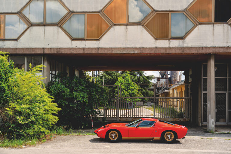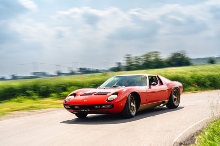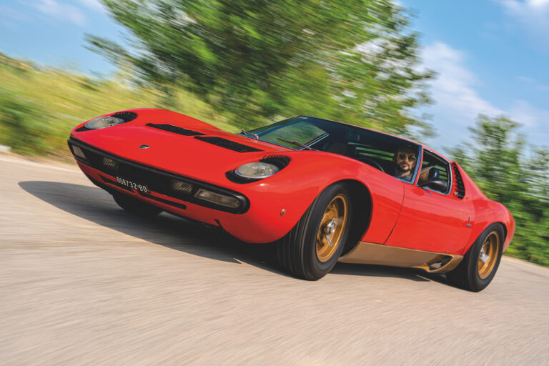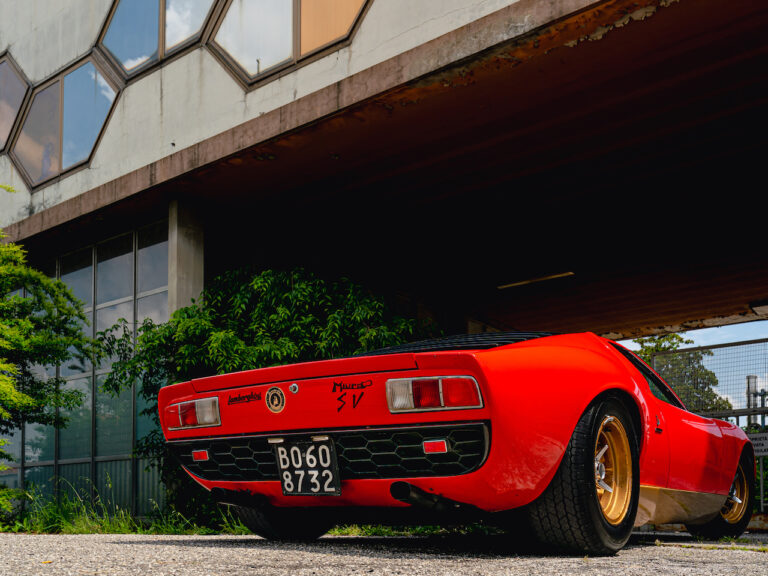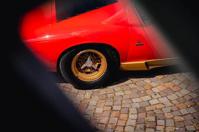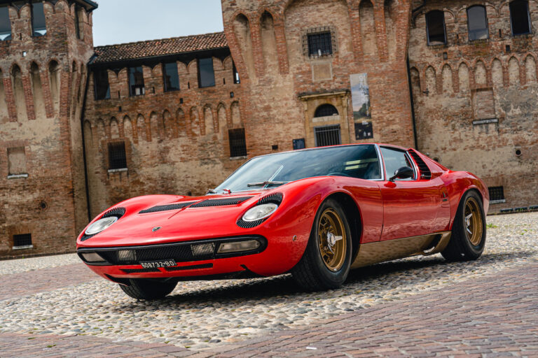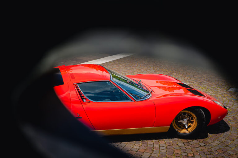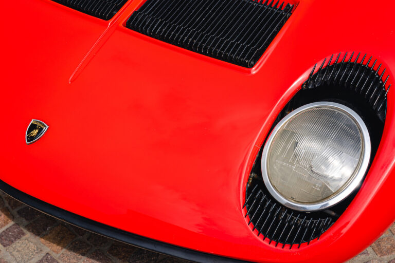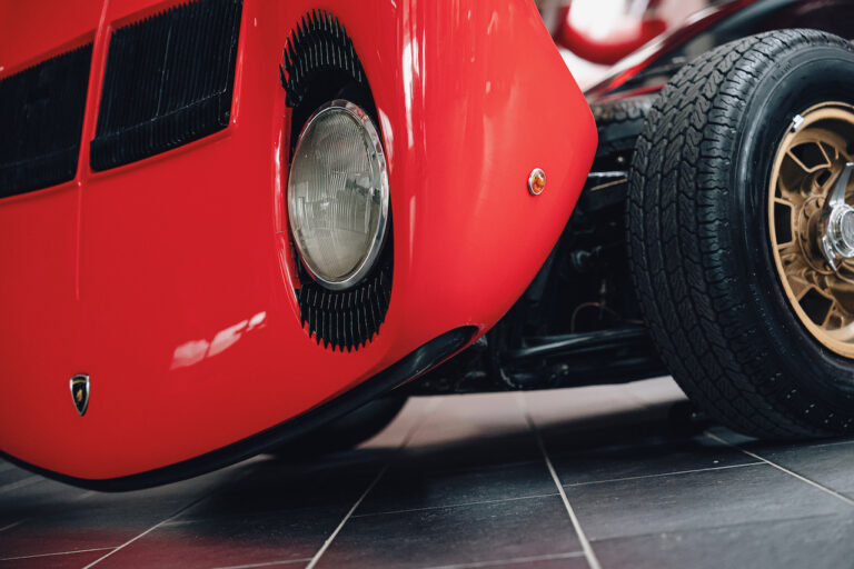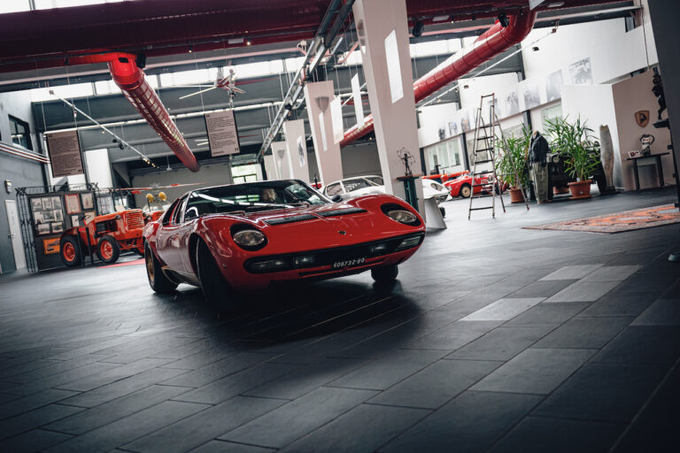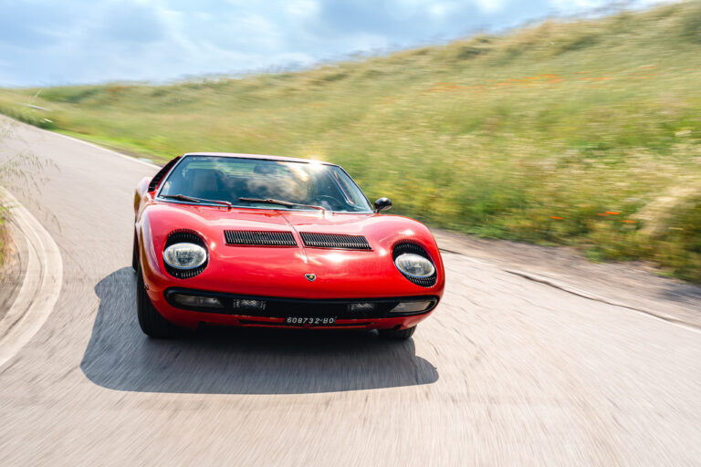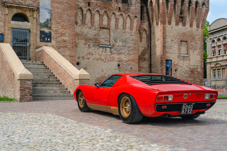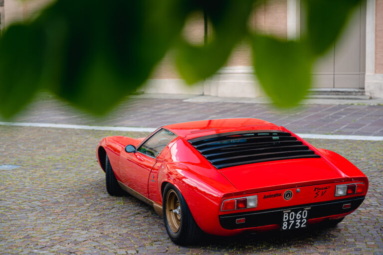 Il sole ora si sta abbassando sui campi perfetti dell’Emilia e sul rosso fuoco della carrozzeria. Filiamo via bassi e veloci sull’asfalto delle strade di campagna, dove l’auto lascia cantare il suo meraviglioso propulsore, con i furgoncini sulla via di casa che dopo una giornata di lavoro ci sfanalano e ci suonano il clacson. Una Miura, le sue perfette condizioni e alcuni piccoli segni lasciati dal tempo, testimonianza di una vita vissuta a pieno, che Ferruccio “junior” e suo padre Tonino hanno saputo preservare con sapienza e gratitudine.