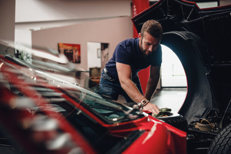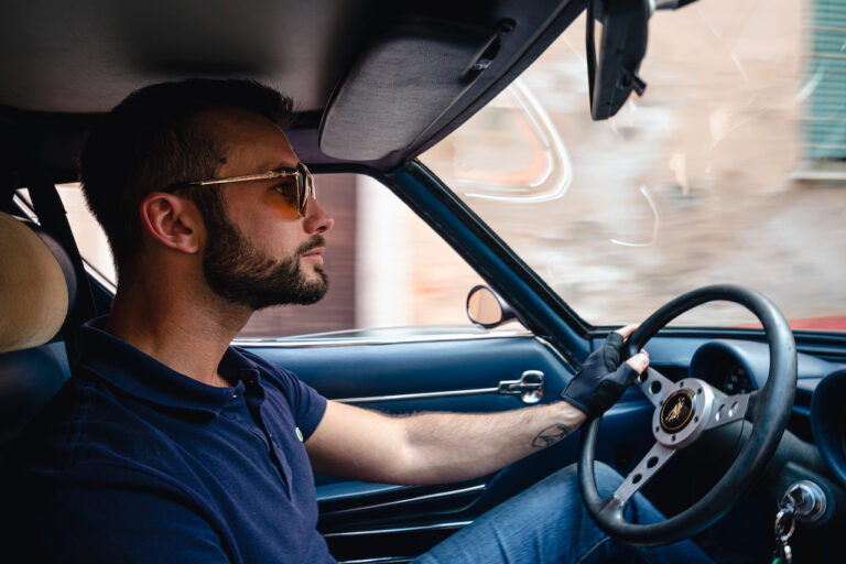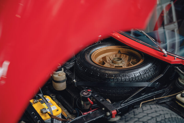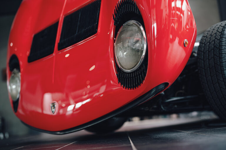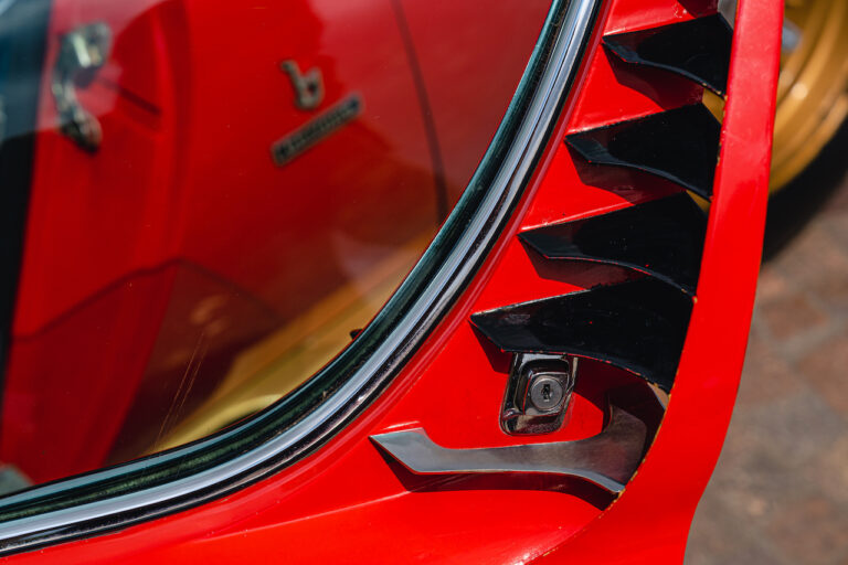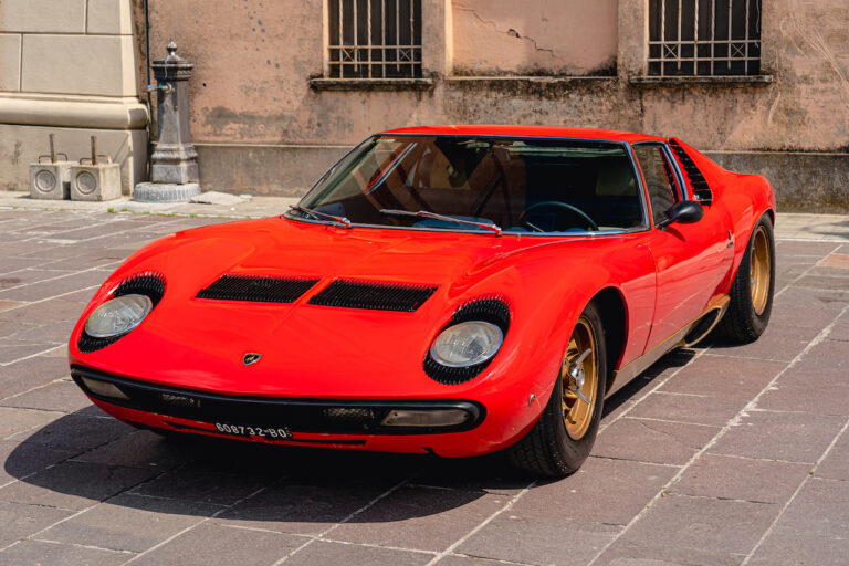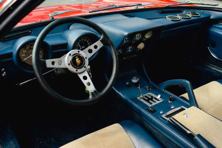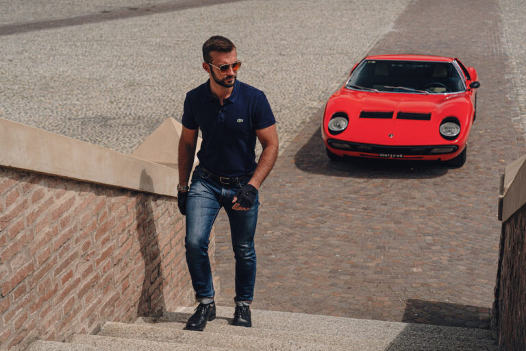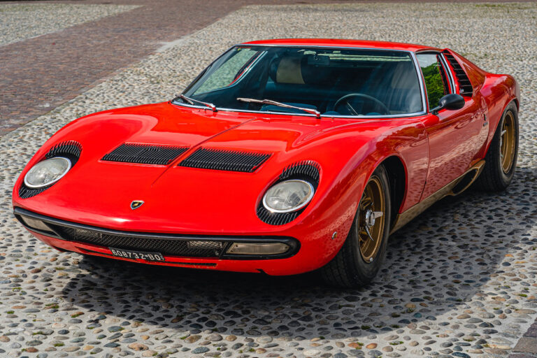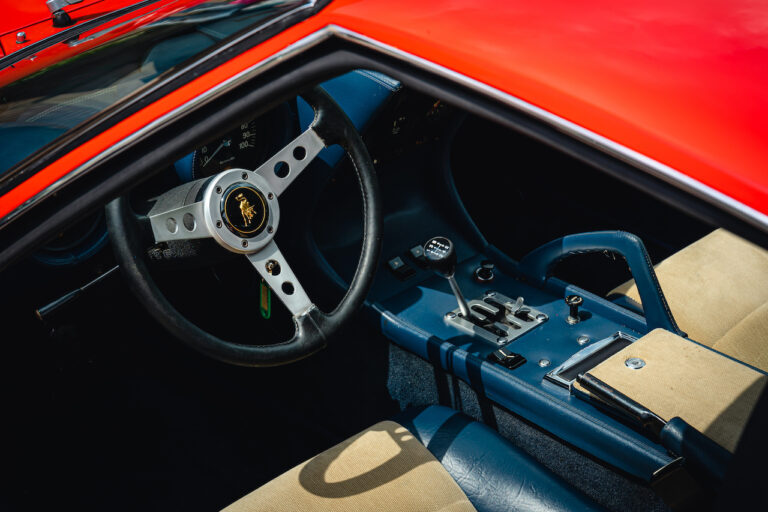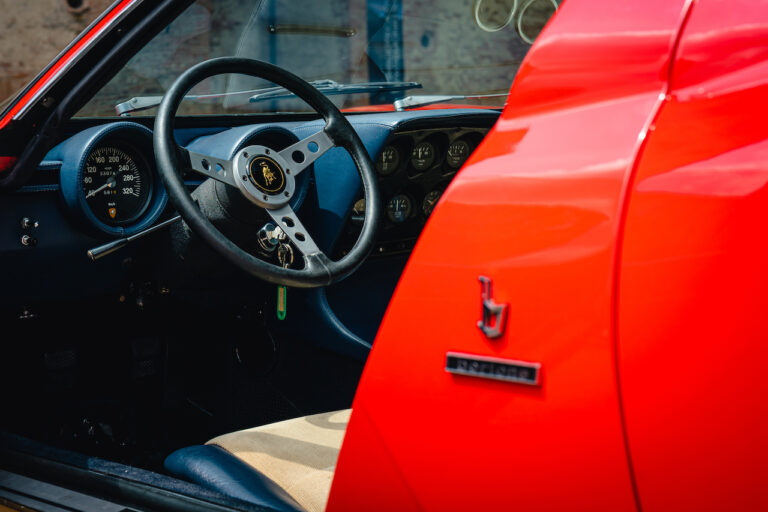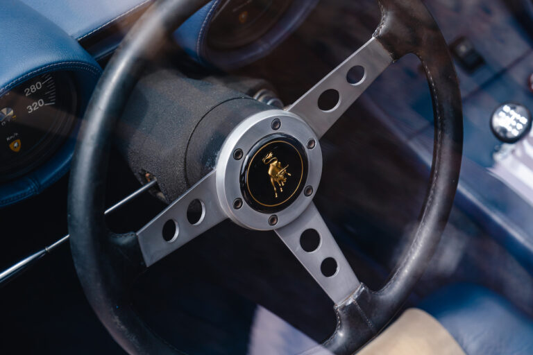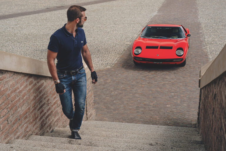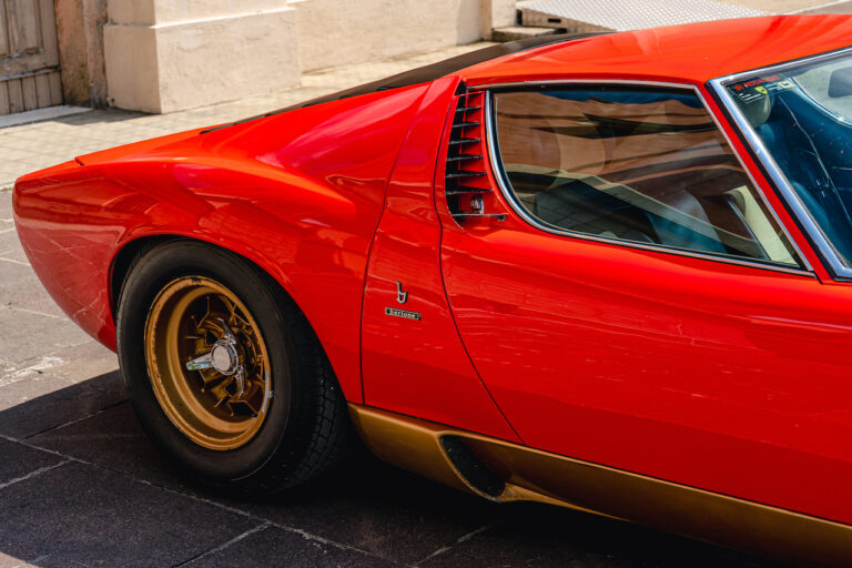 Il sole ora si sta abbassando sui campi perfetti dell’Emilia e sul rosso fuoco della carrozzeria. Filiamo via bassi e veloci sull’asfalto delle strade di campagna, dove l’auto lascia cantare il suo meraviglioso propulsore, con i furgoncini sulla via di casa che dopo una giornata di lavoro ci sfanalano e ci suonano il clacson. Una Miura, le sue perfette condizioni e alcuni piccoli segni lasciati dal tempo, testimonianza di una vita vissuta a pieno, che Ferruccio “junior” e suo padre Tonino hanno saputo preservare con sapienza e gratitudine.
