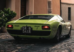 Ogni dettaglio è studiato: i cerchi, le superfici anodizzate nere, le proporzioni perfettamente bilanciate tra sbalzi corti e carreggiate larghe, conferiscono alla Miura un aspetto aggressivo, pur mantenendo una straordinaria eleganza. La Miura è l’auto che trasforma la tecnica in poesia, il metallo in emozione.
