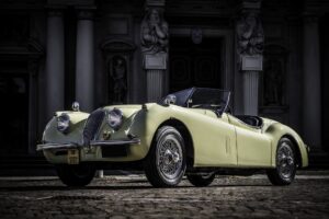Il nome la dice lunga sulle caratteristiche di questa Jaguar senza tempo: XK è infatti la sigla del motore 6 cilindri XK6, mentre 120 è la sua velocità massima espressa in miglia orarie, che corrisponde a 193,4 km/h. Un dato in realtà addirittura inferiore rispetto a quello rilevato nei test dell’epoca e sufficiente a qualificarla come l’auto di serie più veloce al mondo. Ma non è tutto, perché il bellissimo design concepito da Lyons in persona e il suo prezzo competitivo la resero un oggetto molto ambito, soprattutto negli Stati Uniti. La maggior parte delle XK 120 presenti nel nostro Paese sono infatti importate dall’America, proprio come la protagonista del servizio pubblicato su l’automobileclassica numero 28, che si fa notare per la sua colorazione Primarose Yellow.