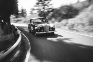 Fu l’anno, memorabile, in cui vinse Stirling Moss. Era il 1955. Con quella 300 SL la Mercedes-Benz si aggiudicò la sua seconda e ultima 1000 Miglia, dopo l’impresa di Rudolf Caracciola che risaliva a ventiquattro anni prima. Ma fu anche l’anno in cui un’assai meno memorabile impresa, ai più dimenticata, interessò nuovamente la stella a tre punte.