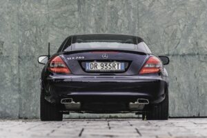 Esistono due serie della R171: quella originaria è stata rimpiazzata nel 2008 da quella leggermente ristilizzata. Interventi di poco conto: spoiler anteriore ridisegnato, aggiunta di un estrattore posteriore, indicatori laterali di direzione (quelli nei gusci dei retrovisori) a led, terminali di scarico a sezione trapezoidale, plastica delle luci di retromarcia più scura, diverso volante e grafica della strumentazione rinnovata, con una bordatura all’interno della quale ci sono i numeri, che prima lambivano il perimetro di tachimetro e contagiri. Meglio la prima o la seconda serie? Si equivalgono: te l’ho detto solo perché tu possa visivamente e agevolmente riconoscerle.