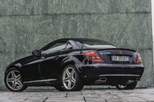 Ovviamente tutto quello che hai appena letto è valido anche per la R171, al secolo la Slk seconda generazione, che nella primavera 2004 ne raccoglie la difficile eredità. Come lo stile è tutto diverso, e passa dagli spigoli piuttosto vivi a forme molto raccordate, così anche la piattaforma è inedita: il passo è più lungo di tre centimetri, la rigidità torsionale è aumentata del 46%, quella flessionale del 19%.