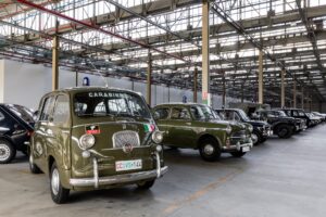 Accanto a questo, sarà visibile una Fiat 600 Multipla in livrea Carabinieri, versione destinata all’impiego ufficiale, con configurazione interna modificabile e dimensioni contenute che la resero popolare anche in ambito civile. Saranno inoltre esposte una Fiat 500B Topolino del 1948 – elegante evoluzione della prima utilitaria italiana – e una Fiat 128, modello del 1969, primo a trazione anteriore prodotto in grande serie dalla Fiat, considerato una pietra miliare nell’evoluzione dell’auto compatta europea.