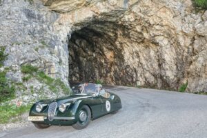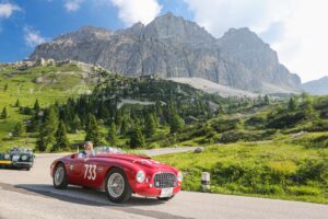 Alla Coppa d’Oro delle Dolomiti non sono stati premiati solo i vincitori della gara di regolarità. Da qualche anno a questa parte all’interno di questa manifestazione viene organizzato un Concorso d’Eleganza che vuole premiare le vetture più prestigiose da un punto di vista estetico, di conservazione e di funzionalità. Quest’anno ha vinto questo importante riconoscimento la meravigliosa Ferrari 166 Mille Miglia carrozzata Touring del 1950 dell’equipaggio giapponese composto da Fukuda Hiromichi e Sugiura Yasuyuki. Una vettura unica per la sua storia. È passata di mano a piloti del calibro di Taruffi, Serafini e Ascari. Ha debuttato nel 1950 alla 1000 Miglia e ha partecipato nello stesso anno anche alla vecchia corsa di velocità della Coppa Internazionale delle Dolomiti. Nel 1951, in seguito a un incidente, è stata comprata da Floyline Gonzalez e ricarrozzata da Vignale. Dopo diverse vicissitudini è stata rivenduta nel 1987 e la vediamo partecipare alla 1000 Miglia del 1996 in una veste nuova, riportata alla sua carrozzeria originale del 1950.