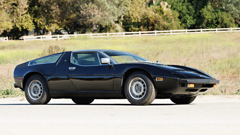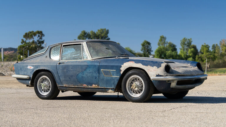 Proprio per questo la vendita online di Gooding ha attirato i miei… appetiti. Un trittico di tridenti tutti da restaurare sono stati offerti in successione – quindi probabilmente provenienti dalla stessa collezione. La prima era una Maserati Ghibli del 1969, certo non la più performante 4.9SS, ma una “semplice” 4.7 e nemmeno al esotica Spider però volete mettere? La Mistral 4.0 del 1967 invece era quella messa peggio, gli mancavano i fanali, era stata parzialmente sverniciata (e sotto chili di stucco) e il parabrezza era danneggiato e questo era quel poco che si vedeva da fuori… La terza era una Bora 4.9 che sembrava quella in condizioni migliori ma anche lei aveva visto giorni migliori. I prezzi andavano dai $65-85.000 per la Mistral, a cui bisognava aggiungere $15.000 (quindi $ 80-100.000) per la Bora e con $100-120.000 si poteva puntare sulla Ghibli. A questo bisogna aggiungere l’aspetto più interessante, tutte e tre erano prive di prezzo di riserva. Hanno chiuso rispettivamente a $53.900 per la Mistral, $56.100 per la Bora) e infine $77.000 per la Ghibli. Certo questa cifra è solo l’inizio. L’inizio del divertimento.