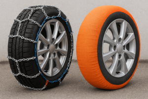 Una valida alternativa sono le calze da neve. In Italia, dal 2015, sono considerate equivalenti alle catene se omologate UNI 11313 o ON v5121, certificazione confermata ufficialmente nel 2023. Sono più facili da installare e garantiscono una guida più fluida, ma si usurano rapidamente sull’asfalto non innevato e condividono lo stesso limite di velocità delle catene.