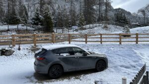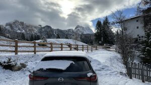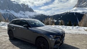 Il risultato? Una media di 6,2 litri per 100 chilometri, cioè 16,13 chilometri per litro. Certo, se vi capita di leggere i test fatti per qualche ora o simulati in pista dalle principali riviste di settore troverete consumi ancora più bassi, ma in questo caso lo scenario è diverso e provo a riassumerlo brevemente: 56 km in città (Roma e Milano), 330 di statale di ‘pianura’ (SS 1 Aurelia), 404 km di strade di montagna (SS 243 del passo Gardena, SS 244 della Val Badia, SS 49 della Val Pusteria) e 1.710 km di autostrade (A1, A12, A15, A22). Bisogna poi considerare i pneumatici invernali Pirelli Scorpion su cerchi da 20 pollici e il fatto che la CX-60 (4,74 metri di lunghezza e 1,89 metri di larghezza) ha viaggiato quasi sempre a pieno carico (tre persone più bagagli) superando ampiamente le 2 tonnellate di massa.