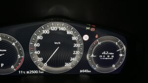 Detto dei consumi, macinare così tanti chilometri con il Suv della Casa di Hiroshima è senza dubbio piacevole, soprattutto sulle lunghe percorrenze in autostrada. In questo caso la fluidità del motore, le scarse sollecitazioni dinamiche sull’asse trasversale e la presenza degli Adas aumentano le sensazioni di comfort e di sicurezza. In particolare, la taratura del sistema di assistenza alla guida di livello 2 è perfetta nelle sue componenti (cruise control adattivo e mantenimento di corsia), così come il monitoraggio dell’angolo cieco. Invasivo e fastidioso è invece l’allarme di rientro in corsia dopo il sorpasso. Sul fronte della rumorosità e dei fruscii, visto il livello della vettura, si sarebbe potuto forse fare qualcosa di più. Senza paragoni la capacità di veleggiamento: su quest’auto, e in genere su tutte le Mazda, la capacità degli ingegneri giapponesi di ridurre gli attriti è a mio giudizio impareggiabile.