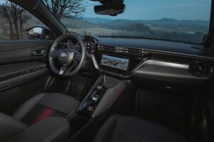 All’interno troviamo il cruscotto a cannocchiale con strumentazione digitale, il volante sportivo in pelle, i sedili Spiga riscaldabili in vinile e tessuto (con regolazione elettrica e funzione massaggio per il guidatore, e regolazione manuale a sei vie per il passeggero), e l’infotainment da 10,25″ orientato verso il conducente, con navigatore, Apple CarPlay e Android Auto wireless. Completano il pacchetto una telecamera a 180°, sei altoparlanti, pedaliera e soglie in alluminio, oltre alla possibilità di scegliere tra otto diverse illuminazioni ambientali che valorizzano prese d’aria, tunnel centrale e cruscotto. Non mancano portellone elettrico, accesso keyless e una suite completa di adas per la guida assistita di livello 2.