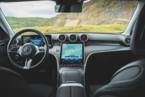 L’abitacolo della Classe C presenta un gran dispiegamento di pollici, intesi come generosa estensione di schermi touch, dai quali comandare praticamente tutto, anche il climatizzatore, che per fortuna ha delle icone belle grandi e sempre in evidenza per regolare la temperatura.