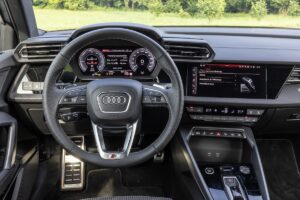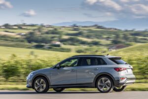 Audi A3 allstreet Tfsi e snocciola poi altri numeri: batteria da 25,7 kWh (19,7 kWh effettivi) con 96 celle prismatiche, suddivise in quattro moduli, che, secondo Audi, immagazzinano il 50% di energia in più rispetto agli accumulatori della precedente generazione di A3 plug-in. La batteria può essere ricaricata in corrente continua (Dc) con potenze sino a 50 kW per portare il livello d’energia dal 10% all’80% in meno di 30 minuti. Parallelamente, è possibile ricaricare in corrente alternata (Ac) con potenze sino a 11 kW. Il processo di rifornimento completo, in questo caso, richiede 2,5 ore.
