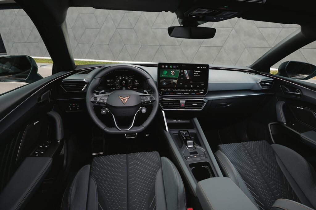 L’interno è coerente con le ambizioni del marchio: curato nella scelta dei materiali e dei rivestimenti, oltre che impreziosito da elementi color rame, come è nello stile di Cupra, e da dettagli sportivi. A cominciare dai sedili avvolgenti. Ma, al di là dell’aspetto, l’abitacolo si dimostra ampio e ospitale.