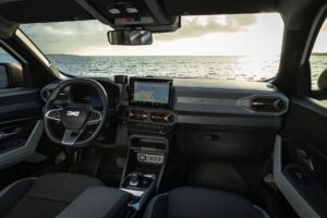 L’abitacolo conferma l’impostazione razionale tipica di Duster. Le plastiche rigide dominano su plancia e portiere, ma la qualità percepita beneficia di assemblaggi curati e di uno stile più ricercato rispetto al passato. Le superfici movimentate e i richiami grafici alla “D” del nuovo logo Dacia spezzano la monotonia e danno personalità all’ambiente.
