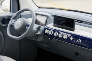 La Desner Y300 è lunga appena 3 metri e dispone di tre porte (due laterali più il portellone posteriore). La versione top di gamma è configurata con quattro posti, mentre l’allestimento base offre due posti. È qui che si percepisce l’intelligenza progettuale di questo veicolo: pensato per la città, ma anche per spostamenti interurbani, grazie alla maggiore autonomia rispetto ai quadricicli L6 (come la Fiat Topolino, per intenderci). Secondo il ciclo cinese, l’autonomia massima raggiunge i 170 km. La velocità, come detto, supera i 45 km/h. La ricarica completa da una presa domestica o da colonnina con attacco Type 2 EU richiede circa sei ore.