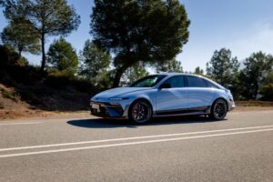 Certamente per capire questa elettrica “pistaiola” bisogna provarla. La cambiata simulata del cambio e il sound del termico dopo un po’ diventano quasi naturali e fanno dimenticare di essere su una EV, e nel complesso risultano divertenti e molto precisi. Invitano infatti a giocare, a cercare la marcia giusta, e i gorgoglii ed i sussulti che provengono da dietro accompagnano la guida. Per quanto riguarda le prestazioni e la guida questa Ioniq 6N pone un nuovo riferimento per le vetture elettriche.