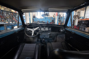 Tanto per iniziare, è moderna nell’approccio alla gestione dello spazio interno. Non esiste un’altra auto anni 70 (progettata però a metà dei 50) in cui entri e sai subito dove riporre telefono, portafoglio, chiavi di casa e tutto il resto. È piccola, certo, ha un volante in una posizione scomodissima (molto orizzontale, cioè) eppure, a sedile tutto indietro, una persona sotto il metro e 80 fatica ad arrivare ai pedali. E la percezione degli ingombri, con quel musetto corto e la codina dritta, è perfetta. Il meglio arriva mettendo in moto e prendendo la strada. Noi l’abbiamo recuperata in centro: in città, figurarsi, è agilissima.