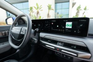L’infotainment è basato su Android Automotive con aggiornamenti OTA, compatibile in modalità wireless con Apple CarPlay e Android Auto, e integra un assistente vocale con intelligenza artificiale capace di comprendere i comandi in maniera rapida e naturale.