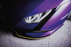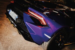 Come sappiamo è a Sant’Agata che sono nati i colori accesi per le supercar, la Miura è stata la vera capostipite e niente fu più come prima. Fino a questo viola specchio, con il rimmel giallo fosforescente che, come detto, ammicca all’emisfero femminile: dall’estrattore, dalle minigonne, dagli specchi retrovisori, che solo loro sono da tenere lucidi sotto una teca, al Guggenheim della 5th Avenue.