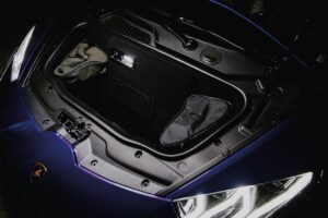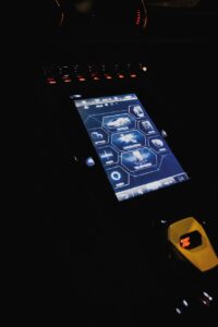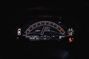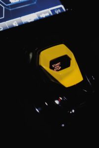 Ok, calma: torniamo indietro. Accendiamola. Alzi la protezione giallo fluo, la griglia tech sopra il tasto a destra, schiacci start e, con un impercettibile ritardo, inizia il film. Sei a pochi centimetri da terra, il tunnel centrale è una colonna vertebrale di esagoni e rette. Display inclinato e lì sopra sette tasti imprigionati da otto semi anelli angolari: alzacristalli, sollevatore muso (ci torniamo), Esc, quattro frecce, assistente di parcheggio, start and stop.