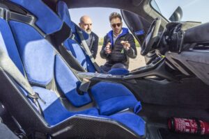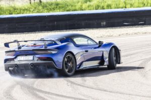A supportare queste prestazioni ci sono freni carboceramici sviluppati con Brembo, cerchi monodado forgiati da 20” (più leggeri di 19 kg rispetto agli standard), e pneumatici semi-slick con misure racing: 245/30 all’anteriore e 305/30 al posteriore.