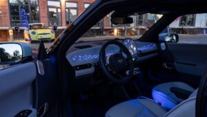 L’interno di nuova Mini Coooper Elelctric è minimal come mai prima. Dominato dall’hi-tec, nella rassicurante e caratteristica forma circolare del maxi schermo centrale Oled tondo, una vera chicca perché è il primo del suo genere, non ha praticamente più comandi né strumenti a vista. La Mini Interaction Unit è il centro di tutta l’esperienza e del comfort.