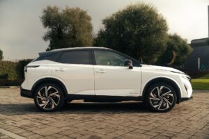 Il motore elettrico eroga 190 cv, distribuiti immediatamente, in più con la funzione e-pedal si può quasi raggiungere la famosa modalità di guida “One pedal drive”, gestendo la Nissan solo con l’acceleratore. Il 1.5 3 cilindri turbo da 158 cv interviene solo quando la batteria è scarica o quando vi siano le richieste di potenza più impegnative alimentando direttamente l’elettrico e con un regime che quando si alza viene raccordato alla velocità dell’auto, rendendo il tutto più “familiare”. Ciò si traduce in medie di consumo di benzina che oscillano dai 4 l/100 km in città o in una statale con guida tranquilla sino ai 7,5 nella guida autostradale più spinta. Sono dati che non si discostano da altri sistemi ibridi paralleli; va da se che la scelta rispetto alle dirette concorrenti più che sui dati di consumo sia da farsi i base ai gusti personali ed al piacere della guida data dal motore elettrico, sapendo di poter contare sempre su un telaio sincero e su una batteria di adas puntuali e mai invasivi.