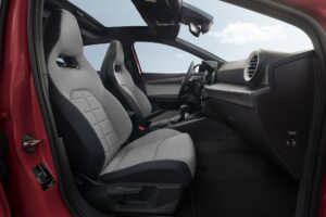 La vera evoluzione si percepisce all’interno. L’abitacolo introduce materiali soft-touch, tessuti goffrati e un cielo scuro che dona un’atmosfera più elegante. I volanti in pelle traforata premium e i sedili sportivi avvolgenti degli allestimenti FR migliorano l’ergonomia e il sostegno, mentre nuove bocchette d’aerazione con cornici a led colorate aggiungono personalità.