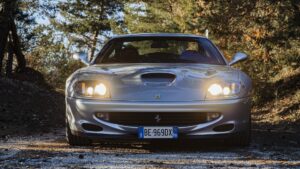 Cosa c’entra la parola Nürburgring con la 550 Maranello, che dà anche il nome a questo colore argento? Forse non tanti ricordano, essendo successo in era pre-internet, che Ferrari presentò la 550 proprio all’Inferno Verde nel 1996. Portarono 7 vetture, le affidarono a 7 campioni legati al marchio di Maranello e gliele fecero guidare davanti a una folla di specializzati e giornalisti, il 21 luglio 1996. I più ferrati ricorderanno la stessa data, ma del 1987, con qualche brividino.