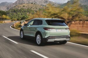 Realizzato sulla piattaforma MEB del Gruppo Volkswagen, questo nuovo modello inaugura anche il linguaggio stilistico “Modern Solid”, che sarà adottato da tutta la futura gamma elettrica della Casa boema. Il frontale si distingue per la nuova mascherina chiusa al posto della classica calandra, e per il lettering Skoda che prende il posto del logo. Le linee della carrozzeria sono pulite e proporzionate, con un posteriore che riprende l’orizzontalità dei fari tipica dei modelli del marchio.