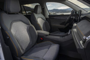 Per il resto la scenografia è molto minimale. Il quadro strumento digitale da 10 pollici è una specifica di tutta la gamma. Mentre il display touch a centro plancia ha una diagonale da 13 pollici solo a partire dalla versione Executive (intermedia) altrimenti è da 10 pollici. Non manca il vano porta ombrelli inserito nelle portiere, così come una comoda protezione in plastica che fuoriesce quando aprire la porta. Perfette per evitare graffi se ci si muove in spazi angusti. Altrettanto furbi gli Skoda Smart Dial: non solo i comandi a rotella del clima, perché premendo al centro possono annoverare altre funzioni, come ad esempio la regolazione del volume della radio.