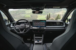 Lo spazio, come detto, non manca e viene utilizzato a dovere: i vani portaoggetti sono numerosi e ampi, il guidatore e il passeggero anteriore possono contare su comodi sedili dotati della funzione massaggio e anche chi siede dietro ha tanti centimetri a disposizione della testa, delle spalle e delle gambe (con una decina di centimetri in più rispetto alla Tiguan). Il bagagliaio, nella variante eHybrid (quella provata in questa prima presa di contatto) – con tutti i posti occupati perde 180 litri rispetto a quelle mild hybrid e diesel, pur restando ampio e facile da sfruttare. Il portellone motorizzato è di serie, utile l’ampio vano sotto il piano che può ospitare i cavi per la ricarica.