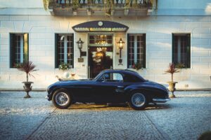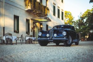Prima di continuare, tuttavia, vale la pena ripassare brevemente quella parte di storia che riguarda la cosiddetta coupé “Villa d’Este”. Il contesto, dunque: nel 1949, Carlo Felice Bianchi Anderloni ha appena raccolto l’eredità e le responsabilità del padre nell’ambito delle attività di progettazione e produzione della Carrozzeria Touring. Il suo primo incarico è quello di rinfrescare le forme della 6C 2500, un modello assai longevo, nato prima della guerra, che ha ancora il telaio separato dalla carrozzeria. Bianchi Anderloni ha l’intuizione di trasferire su quest’Alfa gli stilemi introdotti l’anno prima sulla Ferrari 166 Inter, integrandoli in un design tipicamente Alfa Romeo, ripreso appunto dalle 6C 2500 che la stessa Touring aveva carrozzato in precedenza, in particolare ispirandosi alla 6C 2500 SS Aerlux con tetto panoramico trasparente di perspex.